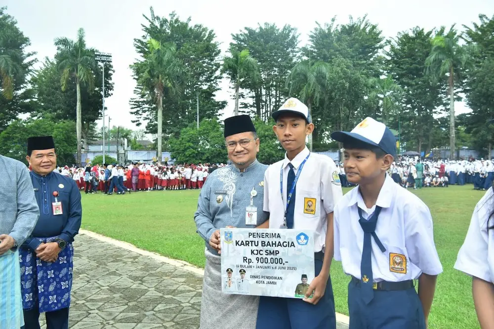 Selain itu, Pemkot Jambi menyerahkan sebanyak 2.000 beasiswa untuk siswa SD dan SMP melalui program Kartu Bahagia. Beasiswa tersebut diserahkan secara simbolis oleh Wali Kota Jambi.