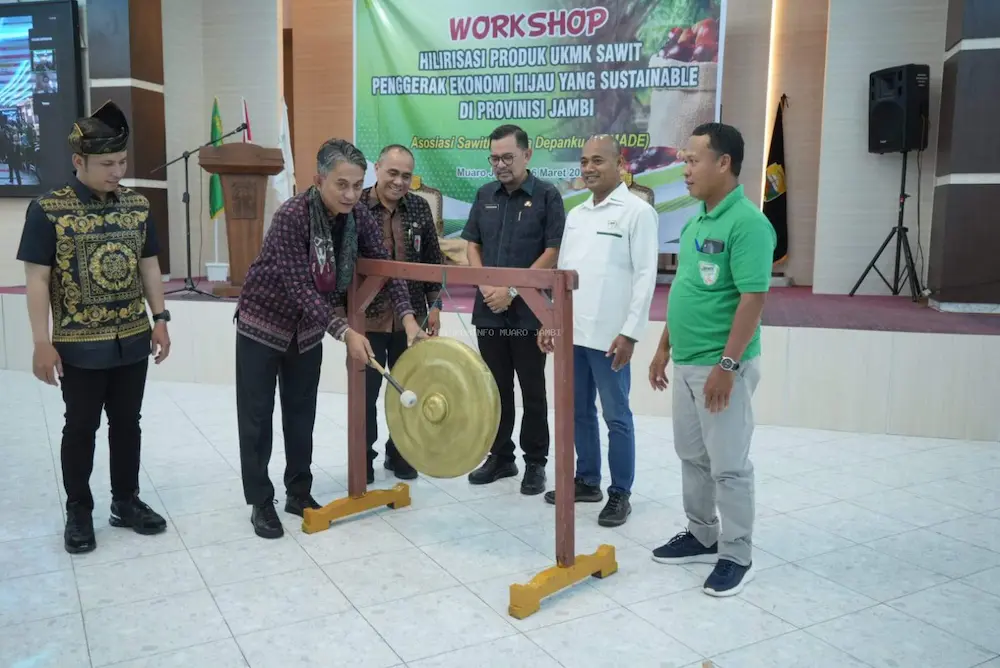 Wakil Bupati Kabupaten Muaro Jambi, Junaidi H. Mahir, secara resmi membuka workshop hilirisasi produk UMKM berbasis sawit pada Kamis (6/03/2025). Acara yang digelar di Aula Nang Inang Kantor Bupati Muaro Jambi ini bertujuan untuk mendorong pengembangan produk turunan sawit yang berkelanjutan.