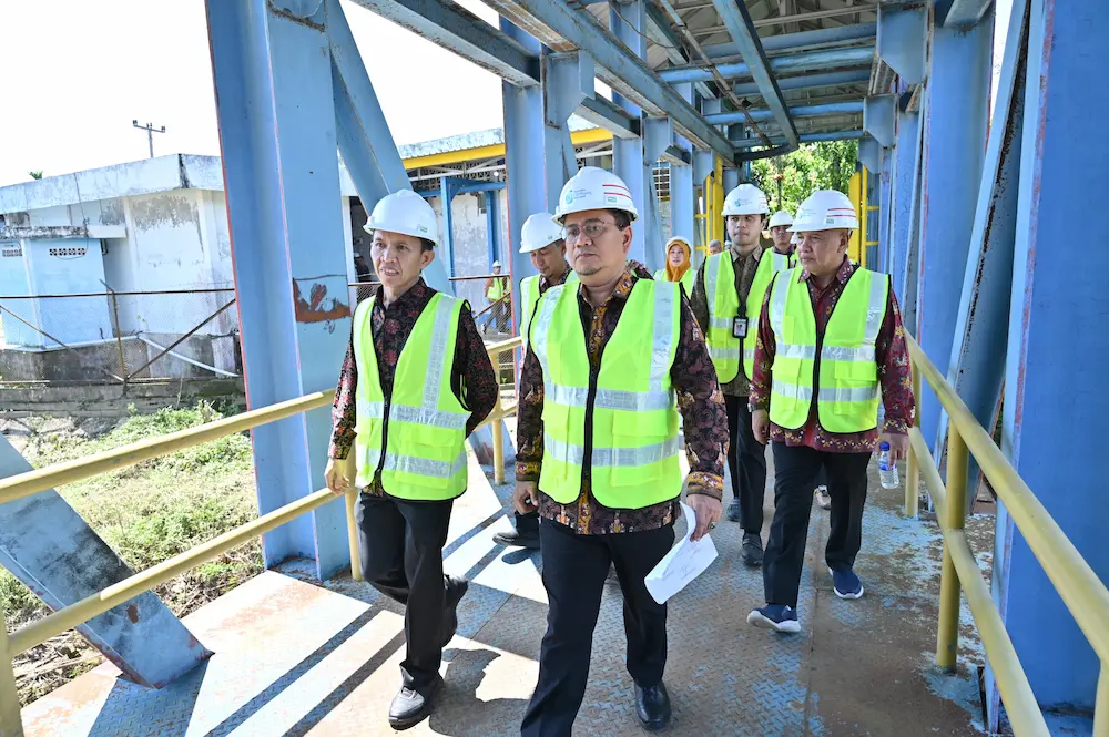 Wali Kota Jambi, dr. Maulana, bersama Wakil Wali Kota Diza Hazra Aljosha, meninjau langsung Instalasi Pengolahan Air (IPA) Broni dan Intake Pulau Pandan milik Perumda Air Minum Tirta Mayang (10/04).