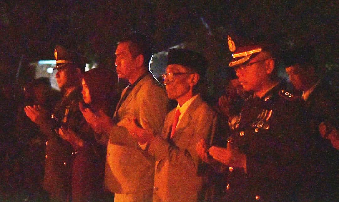 Dan menundukkan kepala seraya berdoa atas pengorbanan para pahlawan dalam mengabdi pada perjuangan demi kemerdekaan Bangsa Indonesia.