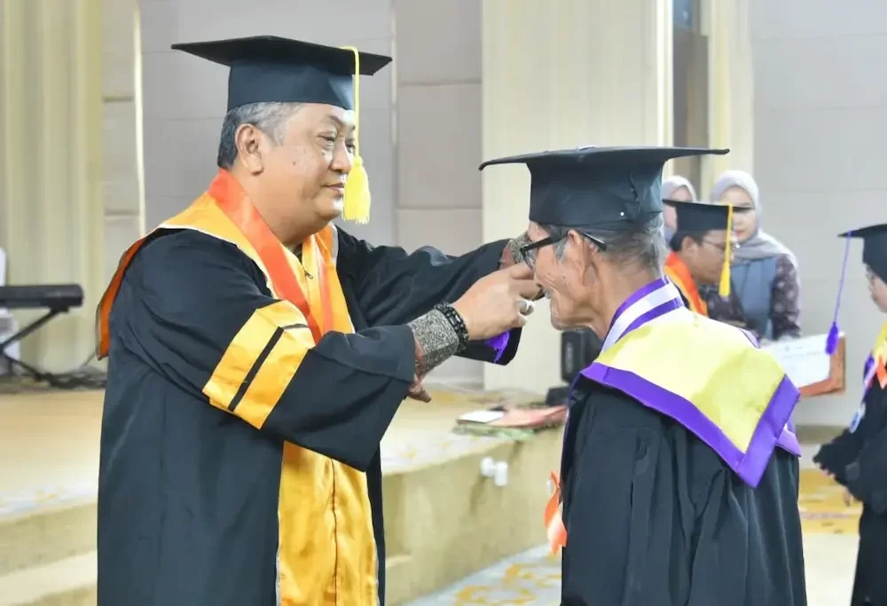Pemindahan tali toga dan penyerahan sertifikat kepada wisudawan berusia tertua 81 tahun menjadi puncak acara.