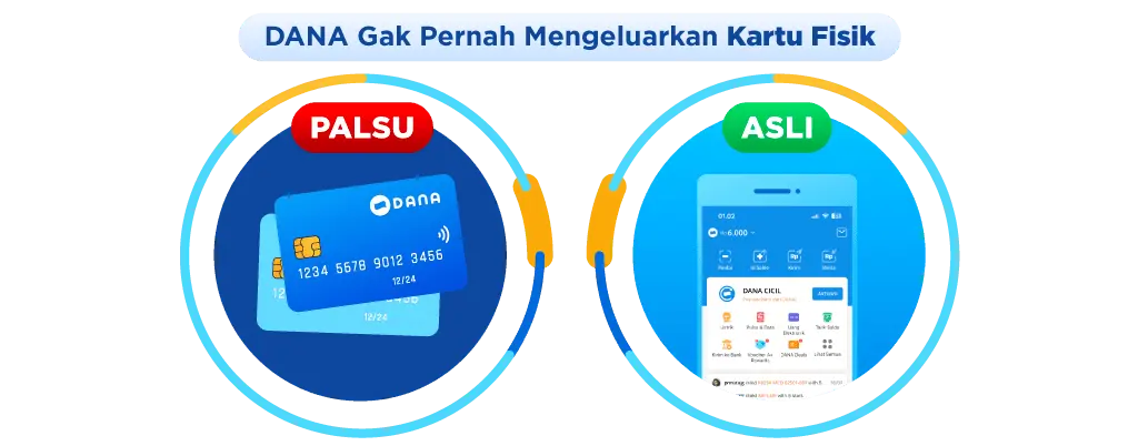 Banyak berita palsu yang menginfokan bahwa DANA mengeluarkan kartu ATM fisik. Ingat, DANA gak pernah mengeluarkan kartu fisik. DANA merupakan aplikasi dompet digital yang bekerjasama dengan berbagai bank di Indonesia.