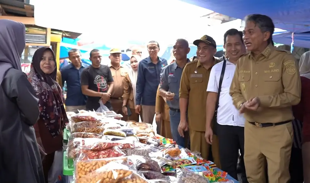 Dalam kunjungannya, Wabup Junaidi meninjau sejumlah lapak pedagang dan berdialog langsung dengan mereka serta para pembeli.
