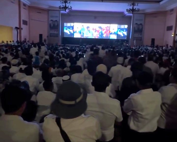 Sebelum pengukuhan tim pemenangan Pejuang Merakyat Romi-Sudirman, cagub Romi membacakan sumpah setia yang diikuti oleh para pendukung yang hadir di gedung RCC Jambi.