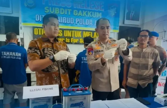 KBO Ditpolairud Polda Jambi, AKBP Lukman, menjelaskan bahwa kedua pelaku diamankan saat melakukan aktivitas ilegal fishing di kawasan Tahtul Yaman, Kecamatan Pelayangan, pada Selasa, 22 April 2025.